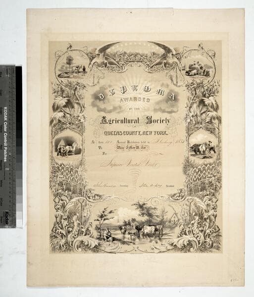 Diploma awarded by the Agricultural Society of Queens County, New York