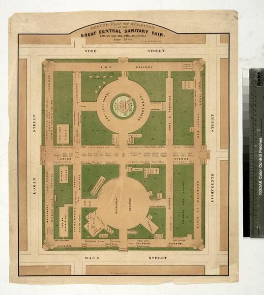 Ground plan of buildings of the Great Central Sanitary Fair, Logan Square, Philadelphia. June, 1864