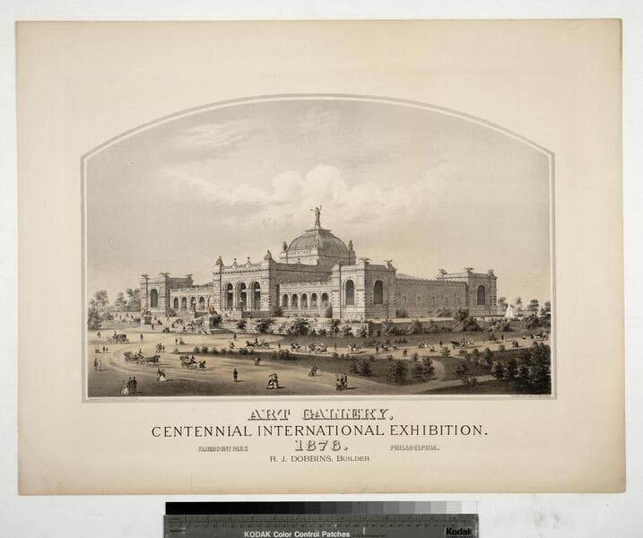 Art Gallery, Centennial International Exhibition. 1876. Fairmount Park. Philadelphia. R.J. Dobbins, Builder