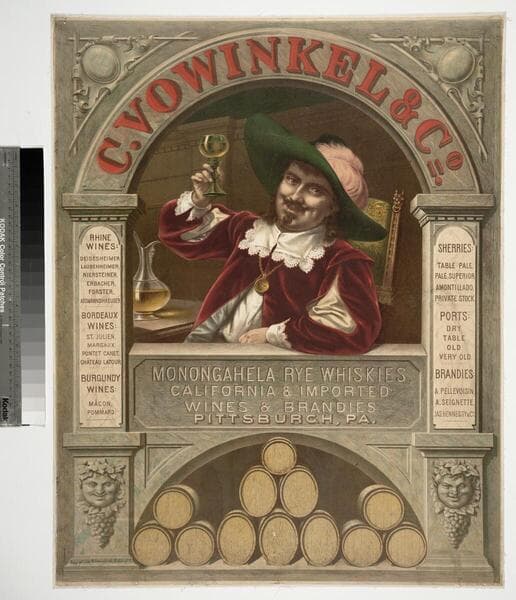 C. Vowinkel & Co. Monongahela rye whiskies, California & imported wines & brandies. Pittsburgh, PA