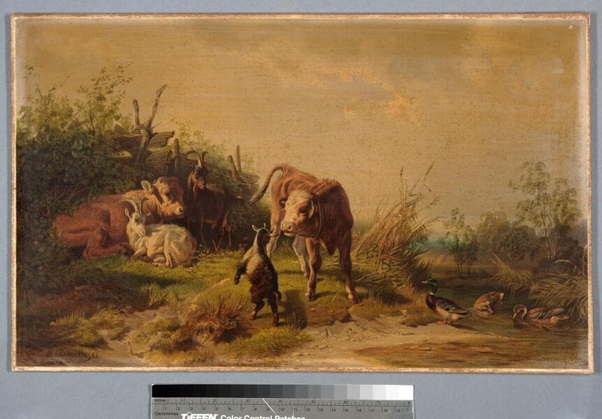 Image of a certificate from the Maine Poultry Association with elaborate decorative frame made up of images of many kinds of birds, including turkeys, chickens, ducks, and a peacock; woman tending the birds in front of a farmhouse at bottom center.