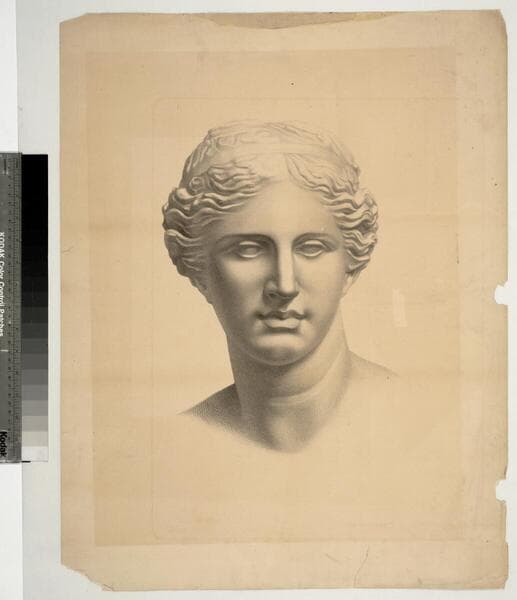 Image of the Greek sculpture Venus de Milo standing on an orange and centered in front of a five-point yellow star.