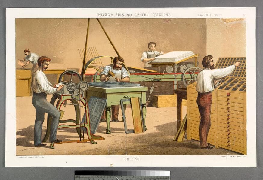 B1.1 - Buildings Miscellaneous - Printing Department - Press Room [Seven men setting type and running presses.]