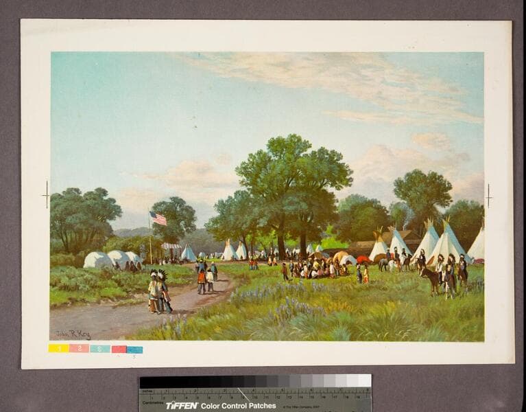 - Image of groups of Native American Indians outside tipis and wigwams in traditional dress at the Indian Congress during the Trans-Mississippi Exhibition held in Omaha, Nebraska, in 1898.