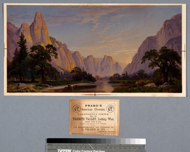 Stereograph views of waterfalls and mountains in Yosemite Valley, California, from the series "Glories of the Yosemite, California," published by E. & H. T. Anthony & Co., including the following titles: Apex of the Three Brothers (#53); From the Top of Vernal Falls. Glacier's Point, 3705 ft. high, in the distance (#54); Sentinel Rock, 3270 feet high. From Mariposa Trail (#59); View on the Merced. Hutchings' Hotel and Bridge. Sentinel Rock in the distance (#63); View at the foot of Bridal Veil Falls (#70); The Three Graces, 3750 ft. high (#72); Cap of Liberty, 4240 ft. high (#87); West Mountain (#105); Eagle Cliff (#106); Leydig's Hotel (#117); Yosemite Falls, 2634 ft. high (#147); Mt. Watkins. From Cloud's Rest. Little Yosemite Valley (#183).