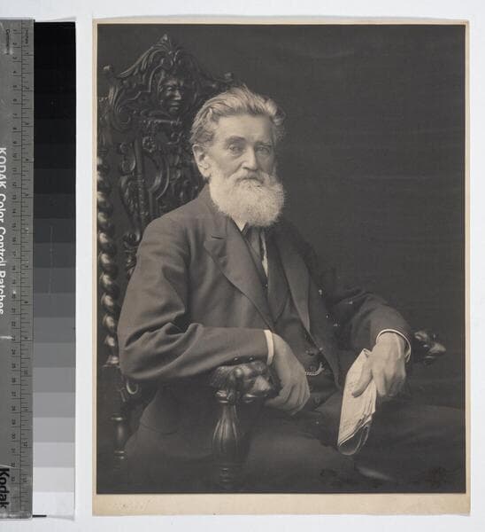 Image of a bust-length portrait of lithographer Louis Prang with a full gray beard.