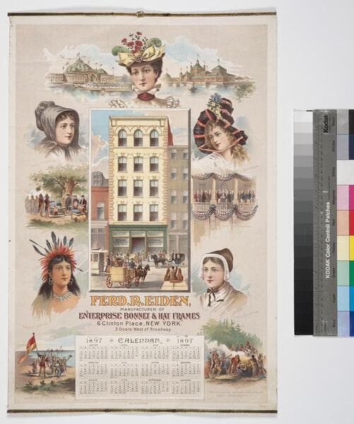 Ferd. R. Eiden, manufacturer of Enterprise bonnet & hat frames 6 Clinton Place, New York. 3 doors west of Broadway