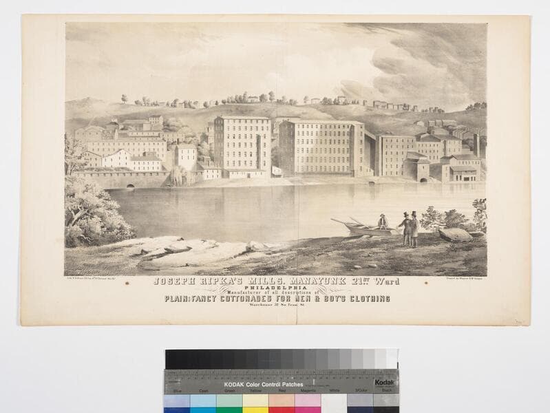 Joseph Ripka’s Mills. Manayunk 21st ward Philadelphia manufacturer of all descriptions of plain & fancy cottonades for men and boy's clothing warehouse 32 So. Front St