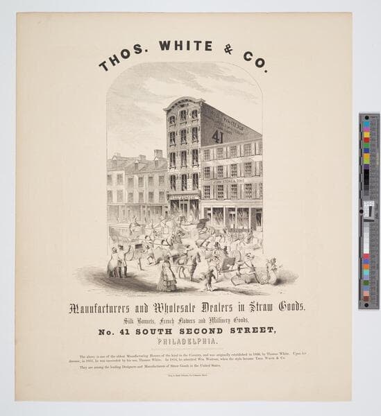 Thos. White & Co. : Manufacturers and wholesale dealers in straw goods, silk bonnets, french flowers and millinery goods, no. 41 South Second Street, Philadelphia