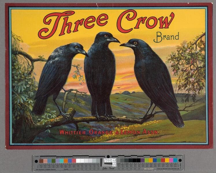 Image of Robin Brand fruit labels for the Home Packing Company of Fresno, California; label with a robin bird perched on a branch with grapes on grapevines in background; two labels flank center with grapes on vines and the Robin Brand logo.