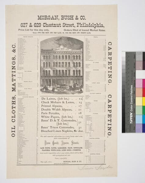 Morgan, Bush & Co. 627 & 629 Chestnut Street, Philadelphia. Price list for this day only. Orders filled at lowest market rates