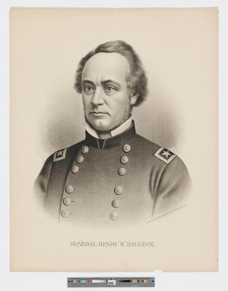 - Image of a bust-length portrait of American Civil War Union General Henry W. Halleck in military uniform.
