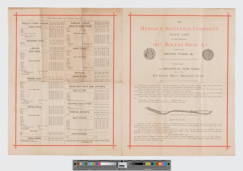 The Meriden Britannia Company's price list of the celebrated "1847- Rogers Bros. - A1."