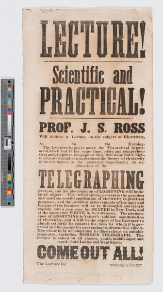 Image of a blank advertisement for phrenology lectures offered by Daniel Jerome Ager; phrenological diagram showing a man's head in profile with the cranial area illustrated with a variety of figures and symbols.