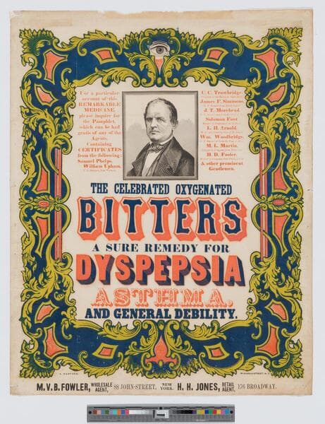 The celebrated oxygenated bitters a sure remedy for dyspepsia asthma, and general debility