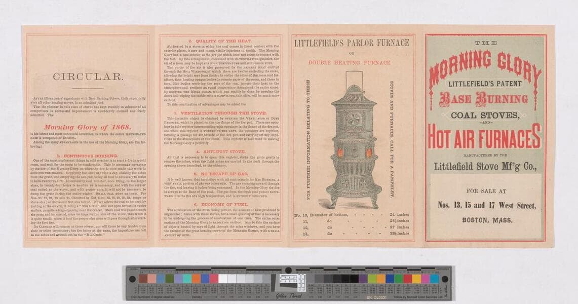 The morning glory Littlefield's patent base burning coal stoves, and hot air furnaces