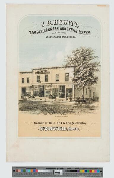 J.R. Hewitt, saddle, harness and trunk maker, and dealer in valises, carpet-bags, whips, &c