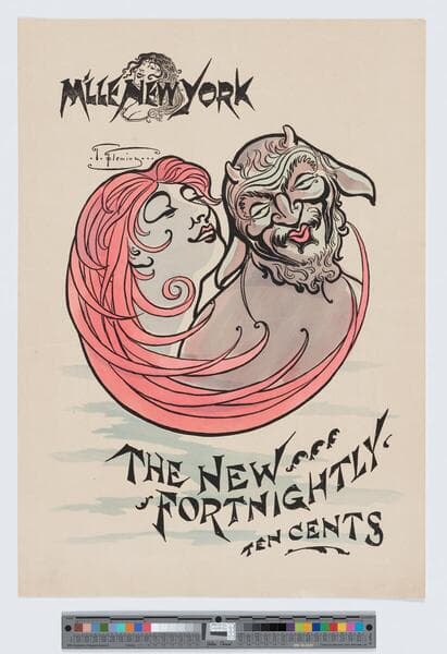 - Image of an advertisement for M'lle New York magazine featuring the faces of a woman and a male faun or satyr.