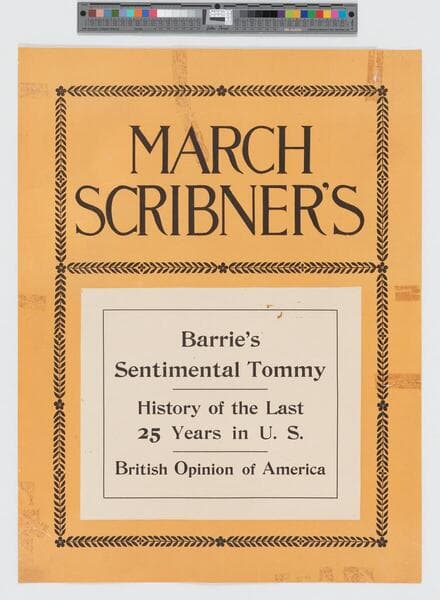 - Image of an advertisement for Scribner's magazine March 1896 issue; text mentioning three featured articles with decorative border.