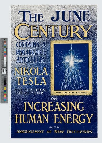 - Image of an advertisement for the Century magazine June 1900 issue featuring an electrical experiment with arcing bolts of electricity.
