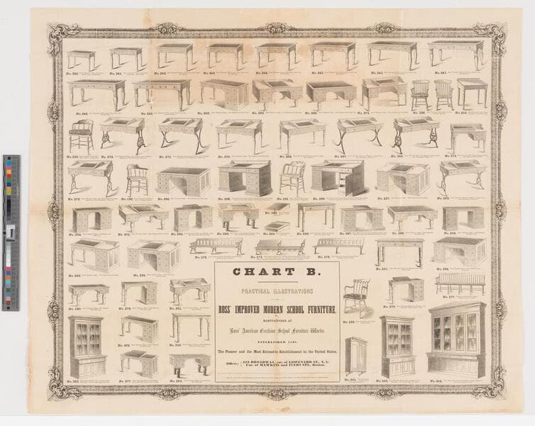 Chart B. Practical illustration of Ross' improved modern school furniture manufactured at Ross' American Excelsior School Furniture Works