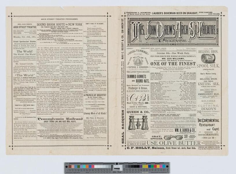 Mrs. John Drew's Arch St. Theatre programme. ... October 9th