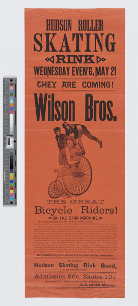 Hudson roller skating rink Wednesday even'g, May 21 : they are coming! Wilson Bros. The great bicycle riders!
