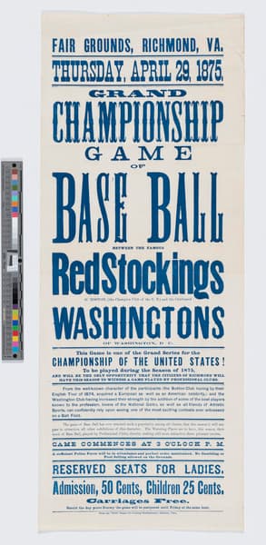 Grand championship game of base ball between the famous Red Stockings of Boston.... and the celebrated Washingtons of Washington D.C