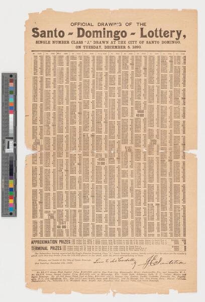 Official drawing of the Santo Domingo lottery…Tuesday, December 5, 1893
