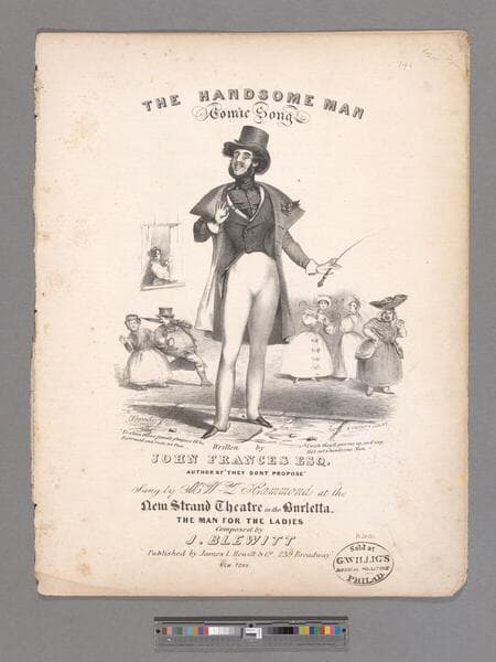 The handsome man : comic song / written by John Frances [i.e. Francis] ... sung by M.W.J. Hammond at the New Strand Theatre in the Burletta, The man for the ladies composed by J. Blewitt