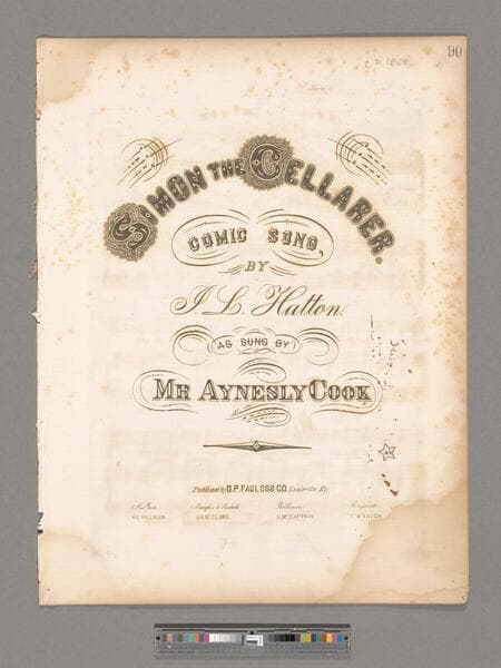 Simon the cellarer : comic song / by J. L. Hatton ; as sung by Mr. Aynesly Cook