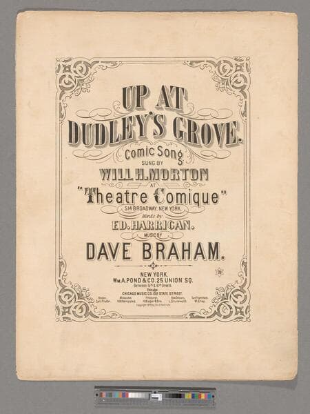Up at Dudley's Grove : comic song / sung by Will H. Morton at "Theatre Comique" 514 Broadway. New York ; words by Ed. Harrigan ; music by Dave Braham