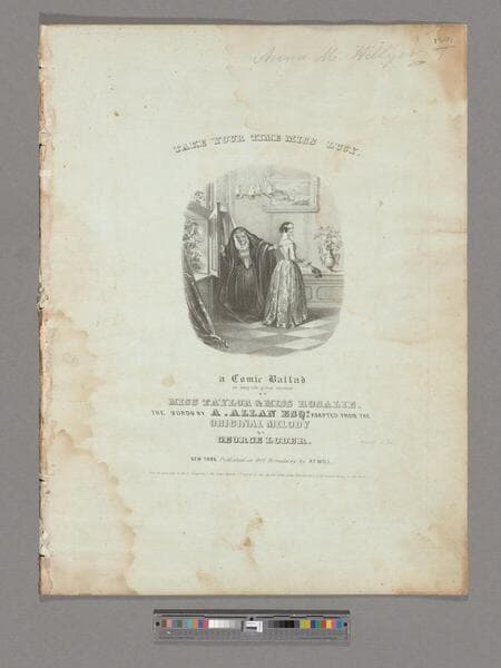 Take your time Miss Lucy : a comic ballad / as sung with enthusiastic encores at Mitchell's Olympic Theatre by Miss Taylor ; the words by A. Allan Esq. adapted from theoriginal melody by George Loder (Music Director)