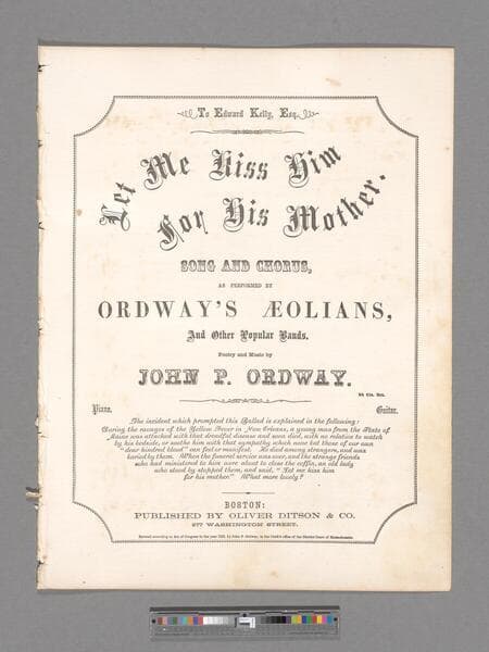 Let me kiss him for his mother. Song and chorus / as performed by Ordway's Æolians, and other popular bands ; poetry and music by John P. Ordway