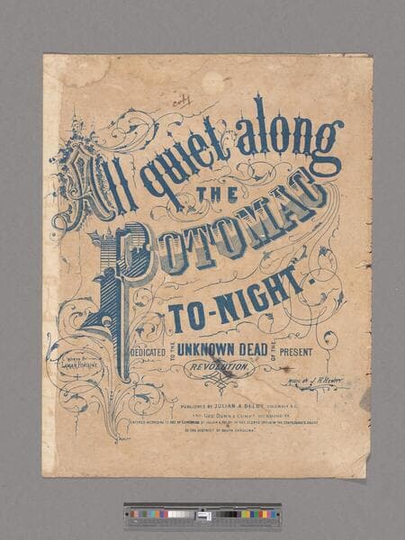 All quiet along the Potomac to-night / words by Lamar Fontaine ; music by J. H. Hewitt