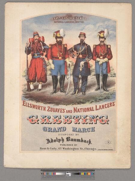 Ellsworth Zouaves' and National Lancers' : greeting grand march / composed by Adolph Baumbach
