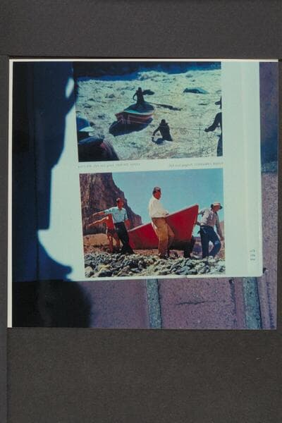 Lining and portage at Vulcan Rap8id. Lining by Clyde Thomas (Martin Litton). Portage by Clyde Childress