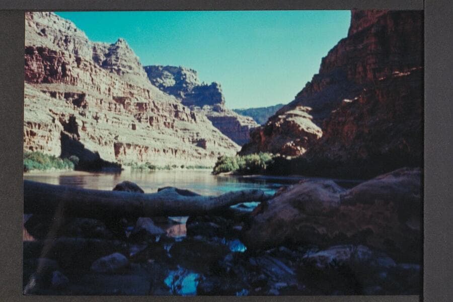 Up to side canyon at Mile 184.1. Cove Canyon at upper left. Mile 184.1