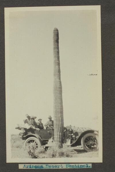 Zahn trip to San Juan placers in a Franklin car. Natural Amphitheater, Arizona, near Chin Lee