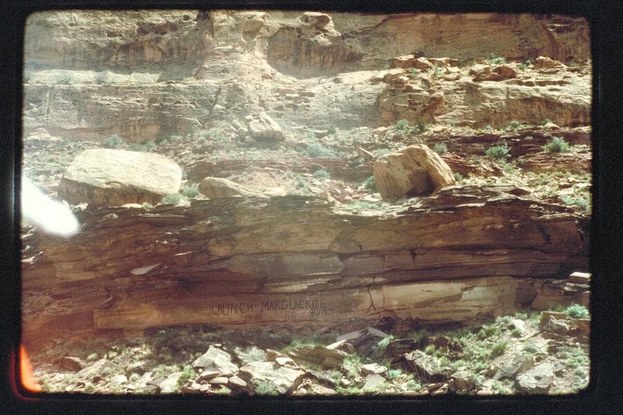 Robidoux inscription, Ekker grave, Embark to below San Rafael, 1975