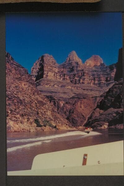Down at head of Grapevine Rapid. USBR cruise with jet boats. USBR bought the original transparency