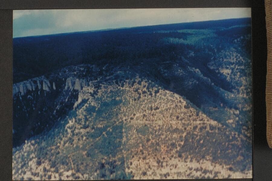 Apache Point from the Esplanade. The trail is on the slide in center