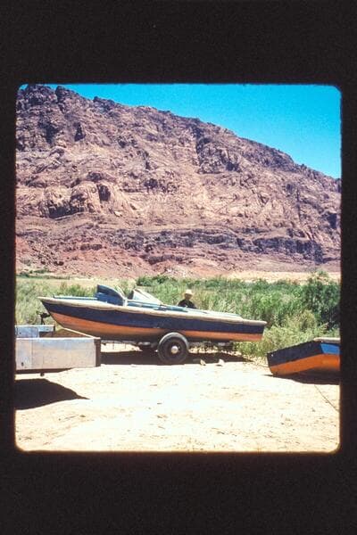 Dock and "BooToo" on trailer at L[ees] F[erry]