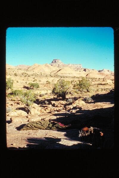 Bona Deason on Colorado traverse, 1940. Bona Deason out of his sleep bag