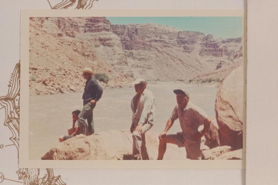 Crew of Harris-Brennan party looksee One Mile Rapid. Mile 204.8