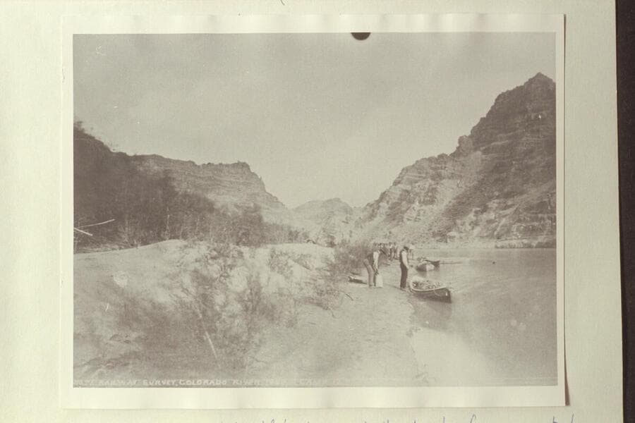 Down Cataract Canyon from Mile 207.05. Nims photo 71 changed by Stanton to 62. Camp No. 12. Mile 206.8