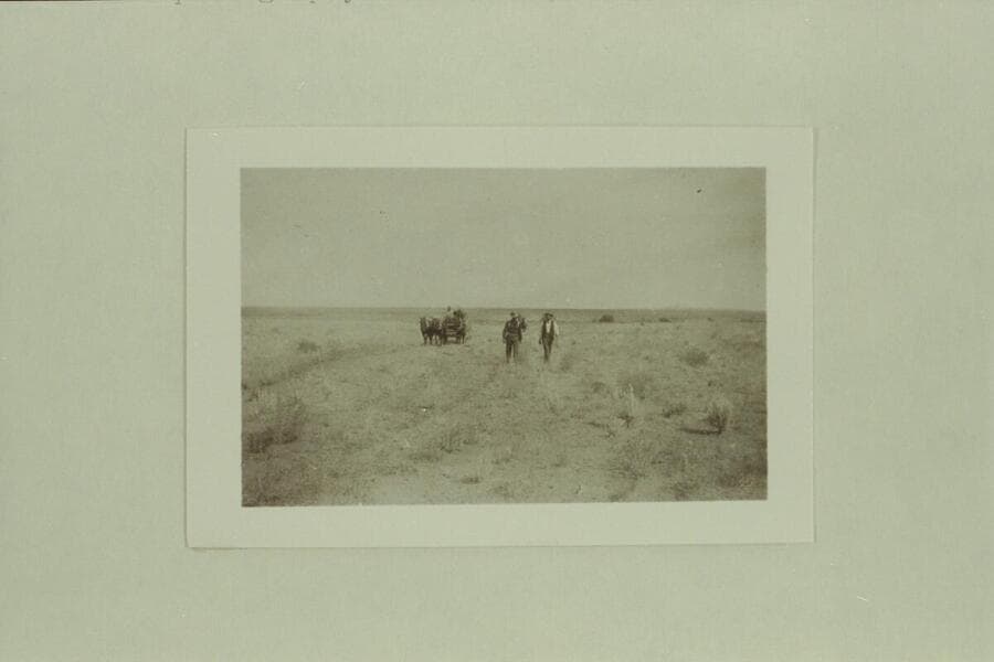 No. 16, Charles Gibbons album. "Is this beginning of scouting "road for Dredge?"--Aleson letter, 1953, Apr. 28. Stone had a small camera with him and sent an album of his photography to Gibbons