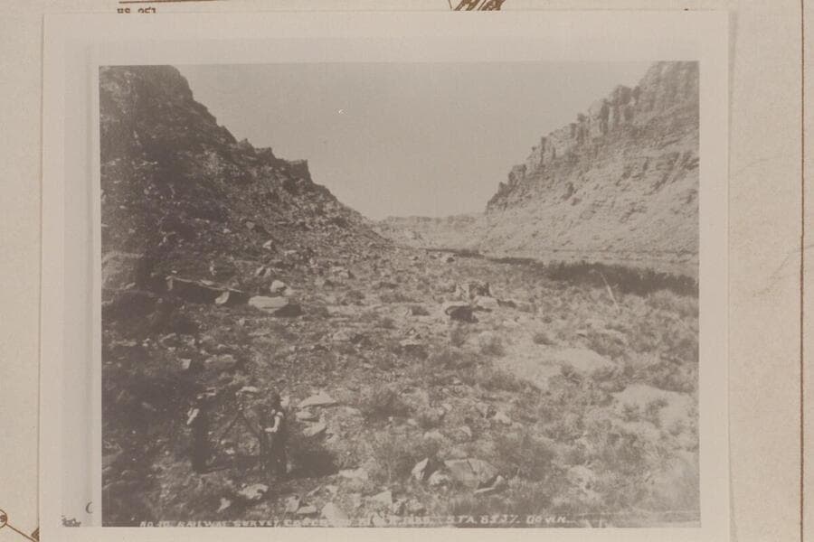 Down Cataract Canyon from the rim one mile below the Junction. ; South from rim of Cataract Canyon one mile below the Junction