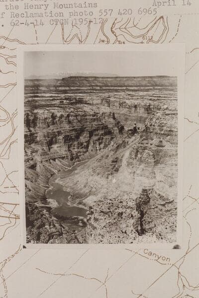 Down Cataract Canyon from the rim one mile below the Junction. ; South from rim of Cataract Canyon one mile below the Junction