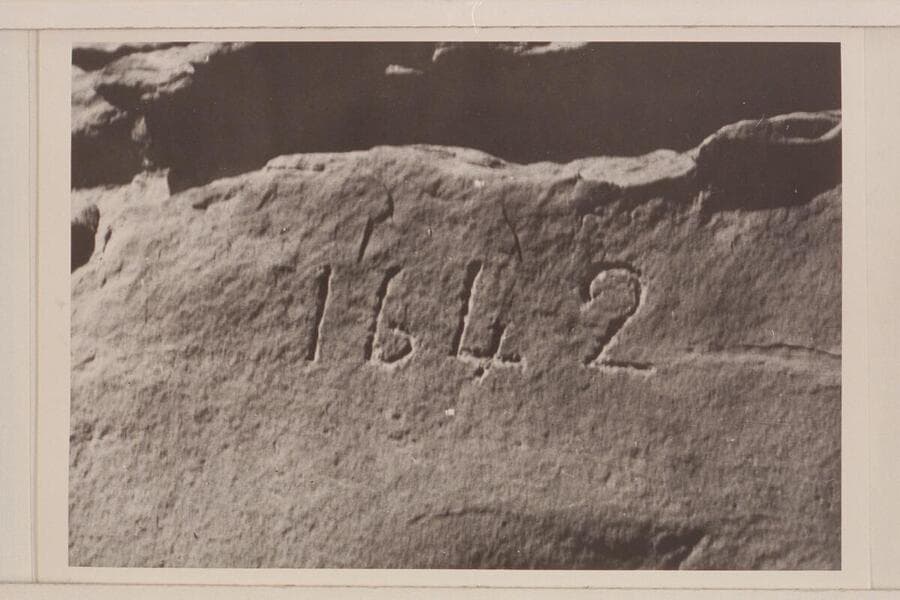 "1642" inscription opposite the mouth of Lake Canyon, Mile 113. Charles Kelly was fairly certain this inscription was a fake